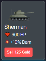 This is a standard tank of which there are a variety. These tanks become available for purchase in the Tank Shop as a player increases their level. Purchased tanks can be sold to recover Gold, the sell value is usually half of the initial buy price. Level up to unlock more powerful standard tanks.