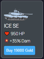 This is your tank, use it to explore the map, initiate mine battles or attack other players. As long as your tank is on the map, it remains vulnerable to attacks by other players which once initiated will automatically redirect you to the battle arena where you will have to fight or get wrecked. If you lose the battle, your tank will be teleported back to your base instantly.
